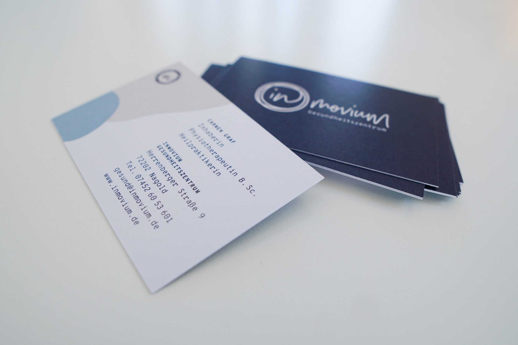 Carmen Graf wollte ihre kleine Physiopraxis hinter sich lassen und mit inMovium ein offenes Gesundheitszentrum aufbauen: mit erweiterten, integrativen Therapiemethoden und Räumen, die auch weiteren Akteur:innen aus der Branche Platz geben. Der Auftritt musste diesen Schritt tragen und eine Atmosphäre vermitteln, die Ruhe und Vertrauen ausstrahlt.