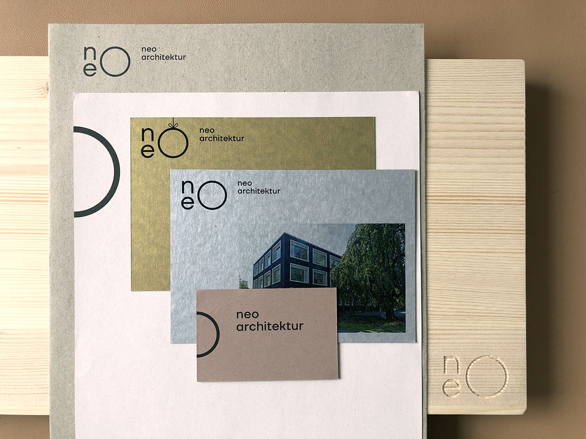 Das neue Logo „befreit“ N und E aus dem Kreis, sodass dieser wieder zum O wird; ergänzend stärkt eine prägnante Wortmarke die Wiedererkennbarkeit. Das kreisrunde O wird als wiederkehrender Anker eingesetzt, der sich auf Papier und im Raum fortsetzt. Das Farbkonzept bleibt in Schwarz-Weiß minimal, während sekundäre Töne aus Materialität abgeleitet werden; Print arbeitet mit durchgefärbten Papieren, Digital bleibt bewusst clean.